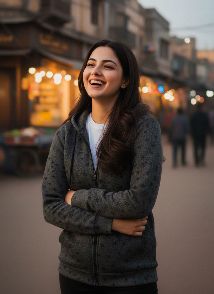 Winter Star Printed Zipper Hoodie For Women
