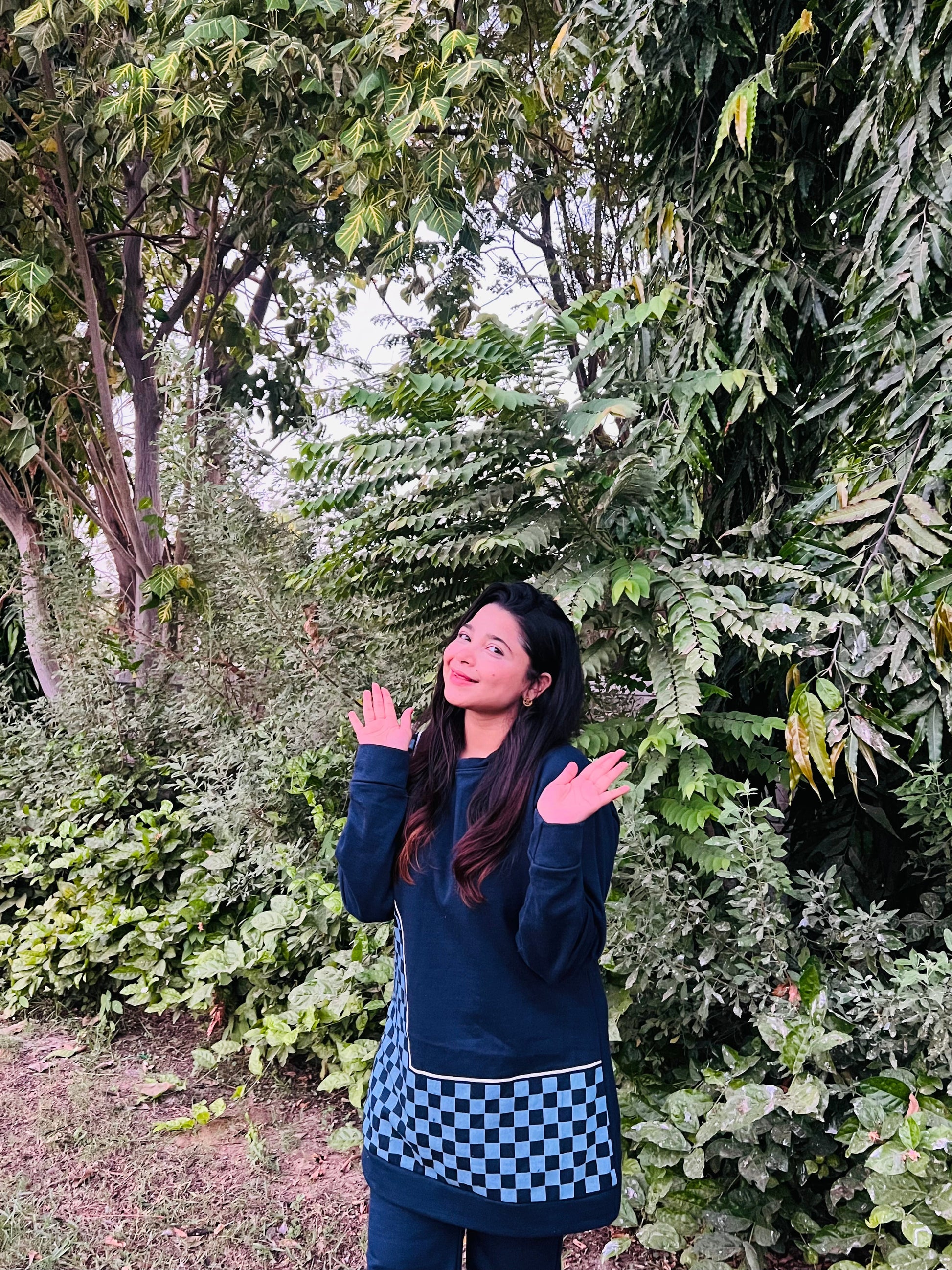 Winter Blue Mosaic Printed Long Sleeves 2 PC Co-Ord Set